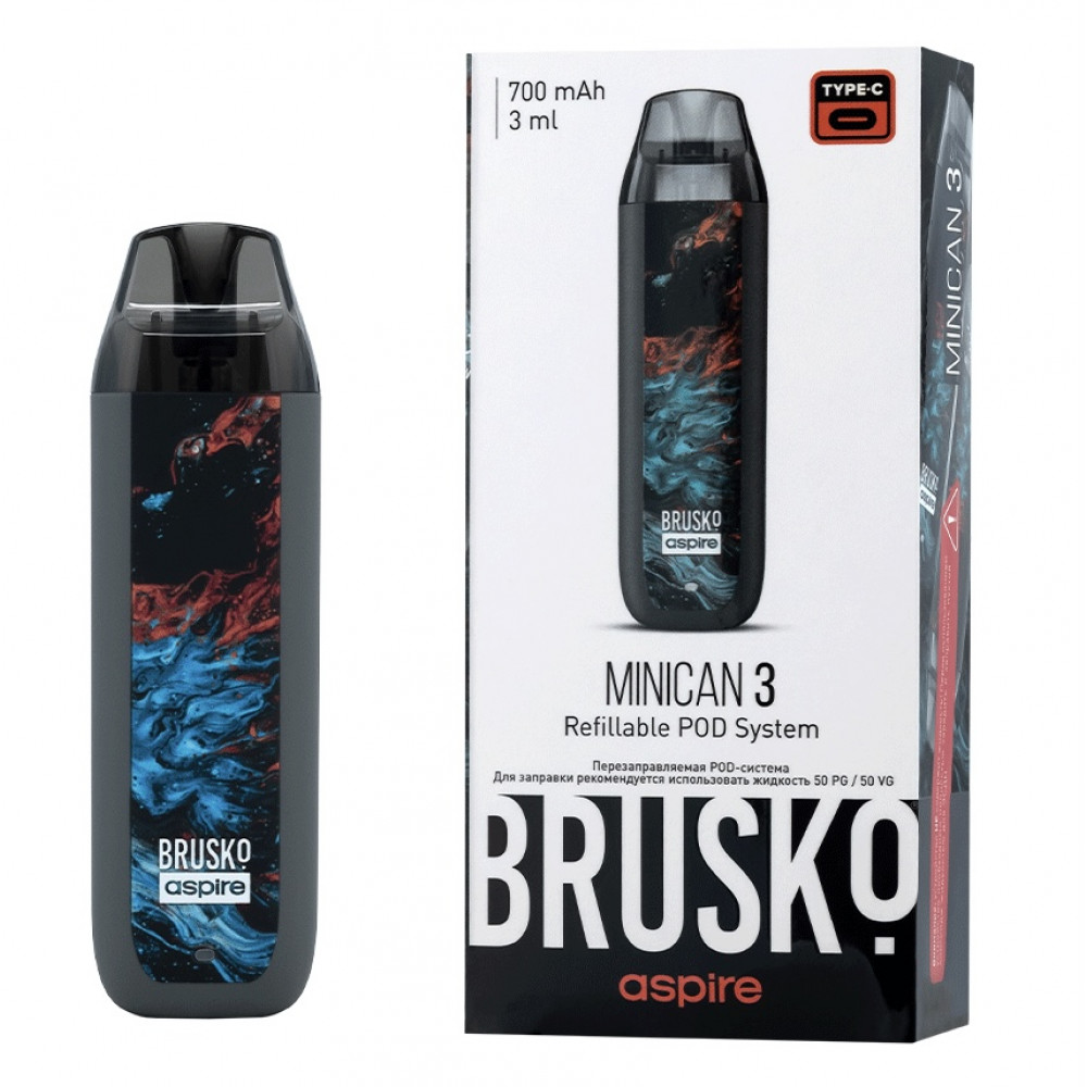 Перезаправляемая Под-Система Бруско Миникан 3 (Brusko Minican 3) 700 mah, Серый Флюид - купить в Десногорске
